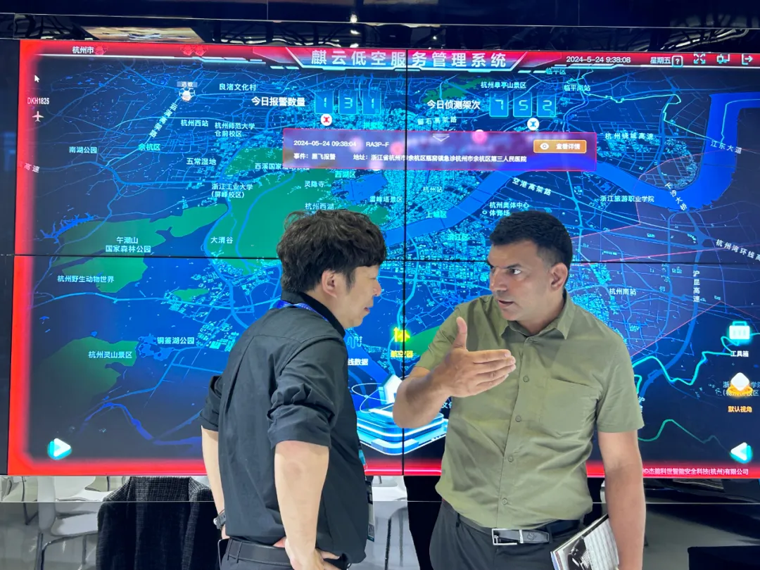 在展示的硬件方面,其中急处突指挥车集成无线电侦测、大数据、AI等技术,可追踪管控低空无人机,给予5000米立体安防,并与城市平台联动实现灵活指挥。在杭州第十九届亚运会、李强总理新疆调研等活动中成功应用,展现卓越效能,也成为了关注热点。