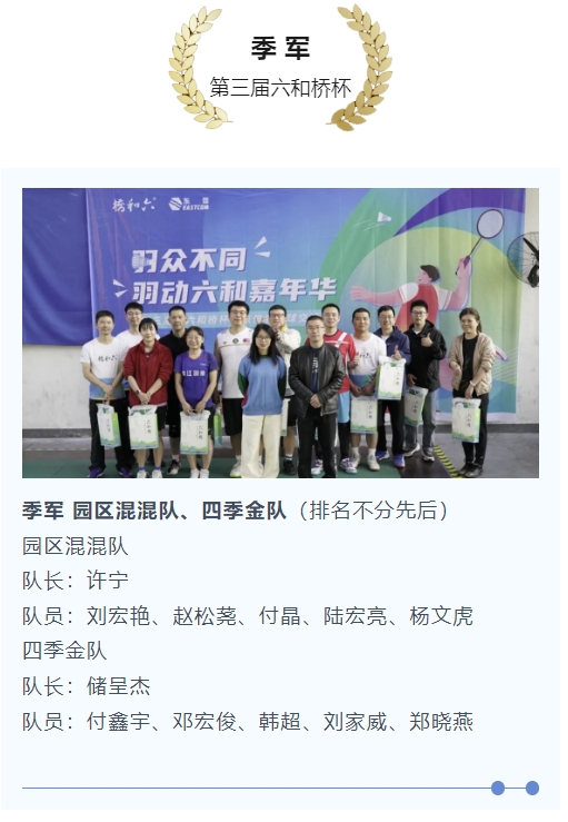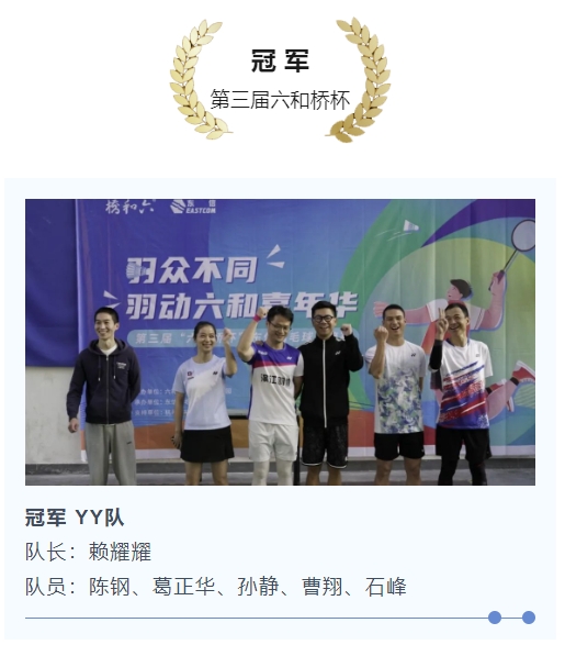 2023年11月25日下午,由qy球友会QY、东方通信科技园主办,东信羽毛球俱乐部承办,杭州银行滨江支行支持的2023“羽众不同 羽动六和嘉年华第三届‘qy球友会QY杯’东信羽毛球研讨赛”决赛在东方通信科技园羽毛球场隆重举行,四支队伍在这里争锋竞技。