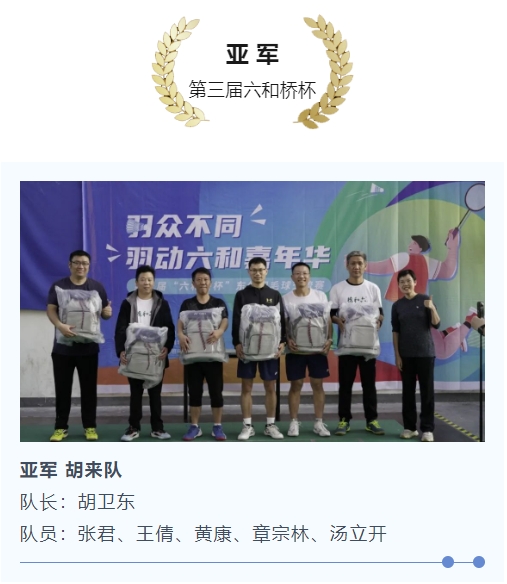 本次羽毛球赛采用水平定级分组制,每个队伍共有6位成员。四支决赛队伍经过一番激烈的较量,最终决出冠亚季军。qy球友会QY创投投资总经理杨文虎、qy球友会QY集群总经理倪卡卡、羽毛球大赛裁判长陈林林、东信羽毛球俱乐部会长田晓林分别为获奖选手颁奖。