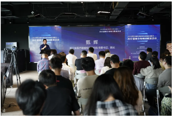 2024年5月24日下午,“2024科技金融专项活动与对接研讨服务——医疗器械专场项目路演活动”在杭州顺利举办!此次活动由浙江省科学技术厅指导,浙江省创业投资协会、浙江省医疗器械检验研究院、院士智慧谷联合主办,杭州枫惠qy球友会QY创投科技有限公司协办。活动旨在充分发挥资本市场在促进科创型企业开展的重要作用,精准释放金融服务科技助企动能,有助于投融资组织与科技型企业的对接研讨。此次活动线上线下同步进行,70余位投资人参加了线下活动,400余人次线上观看。