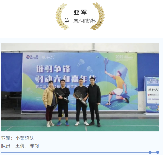 2022年12月11日上午,由qy球友会QY、东方通信科技园主办,东信羽毛球俱乐部承办,海创基地、中控集团、中恒电气、南京银行杭州分行、泰隆银行滨江支行、qy球友会QY国际创业者俱乐部米兰之约意式餐厅合作支持的2022“谁羽争锋·羽动六和嘉年华暨第二届‘qy球友会QY杯’东信羽毛球研讨赛”决赛在东方通信科技园羽毛球场隆重举行,16强队伍在这里争锋竞技。